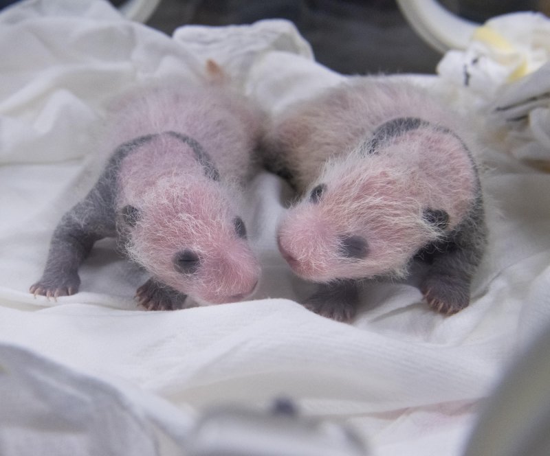 에버랜드 판다월드에는 지난 7일 국내 첫 쌍둥이 판다인 암컷 2마리가 자연 번식으로 태어났다. 현재 눈과 귀, 등, 앞다리, 뒷다리 등 검은털이 자라날 신체 부위에 검정 무늬가 보이기 시작하며 건강하게 성장하고 있다.