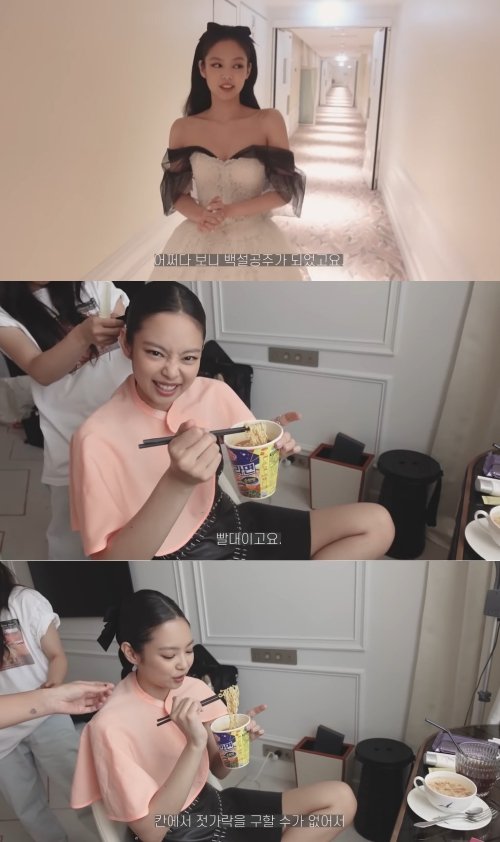 다음날 '디 아이돌' 인터뷰 준비를 하던 제니는 "지금 메이크업하고 있어서 (후루룩하고 면을 못해) 끊어먹고 있다. 칸에서 젓가락을 구할 수 없어 빨대로 먹고 있다.