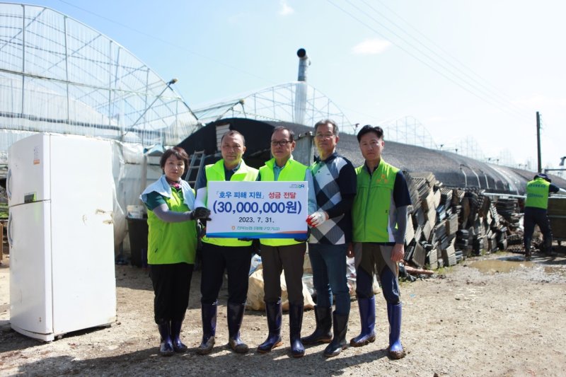 이번 성금은 농협전북본부와 지역 전 농·축협이 함께 마련했다. 성금은 호우 피해 지역에 나눠 전달될 예정이다. 이밖에도 전북농협은 △피해지역서 임직원 일손돕기 △침수 농기계 무상 수리 △1000만원 무이자 대출 △임직원 성금모금 등 수해 농업인 돕기에 나서고있다.