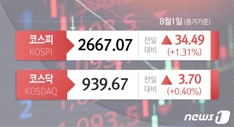 (서울=뉴스1) 이기림 기자 = 8월 첫 거래일인 1일 코스피 지수는 2660선을 넘어서며 연중 최고치를 갈아치웠다. 네이버, 카카오 등 인터넷주들과 삼성바이오로직스 등 바이오주가 지수를 끌어올린 것으로 풀이된다.