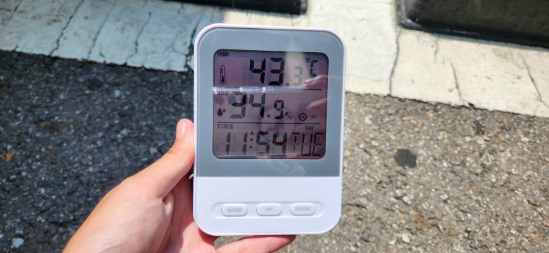 1일 낮 12시 서울 중구의 한 노상주차장. 따가운 햇볕이 내리쬐는 아스팔트 도로 위에 온도계를 올려놓자 10분만에 섭씨 43도를 기록했다. 기기를 꺼낼 때 온도가 34도였던 점을 감안하면 순식간에 10도가량 치솟은 셈이다.