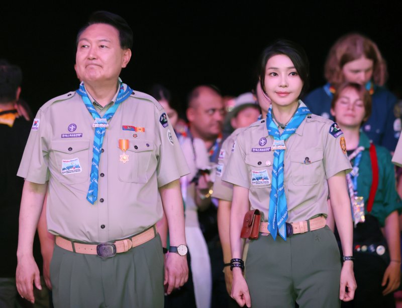 윤 대통령과 부인 김건희 여사는 이날 오후 전라북도 부안군 새만금에서 열린 '2023 새만금 제25회 세계스카우트잼버리'(세계잼버리) 개영식에 참석했다고 대통령실은 밝혔다.