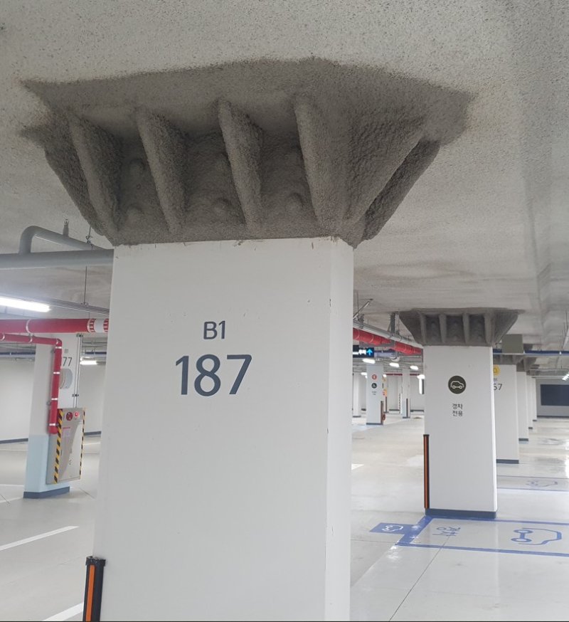무량판 구조는 보 없이 기둥이 직접 슬래브를 지지하는 만큼 기둥이 하중을 견딜 수 있도록 보강 철근(전단보강근)을 반드시 넣어야 한다. 보강 철근은 가로 세로로 엮여 있는 철근을 감아주는 역할을 한다.