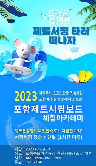 A1컴퍼니 김정학 대표는 “제트서핑보드 체험아카데미가 포항의 여름 대표적 해양관광자원으로 자리매김할 것으로 기대한다"며 "포항시민들과 관광객들의 많은 관심과 참여를 당부드린다”고 밝혔다.