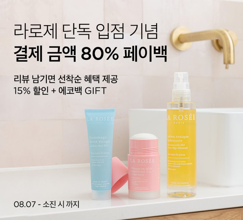 뷰티컬리는 라로제 단독 입점을 기념해 이날부터 라로제 인기 제품을 최대 15% 저렴하게 구매할 수 있는 '라로제 입점 이벤트'를 진행한다. 사용 후기를 남긴 고객 중 선착순 1000명에게는 결제 금액의 80%를 컬리 적립금으로 돌려준다.