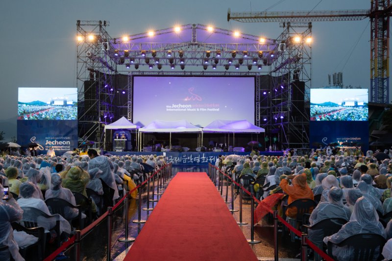 [제천=뉴시스]이도근 기자 = 제6호 태풍 '카눈'의 영향으로 제19회 제천국제음악영화제 개막식 장소가 변경됐다.