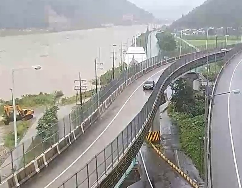 현재 군위군 무성리 지점의 수위는 5.26m로 관측됐으며 오후 2시쯤 홍수경보 수준(6m)에 바짝 다가섰다.