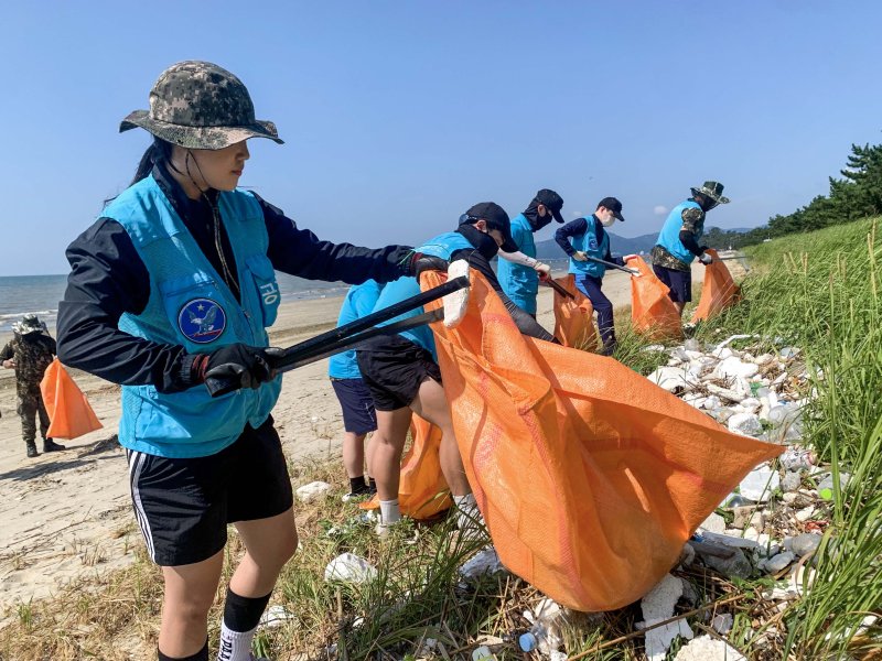 [광주=뉴시스]이영주 기자 = 공군 제1전투비행단은 17일 전투기 훈련이 이뤄지는 미여도 사격장이 위치한 전북 고창군 동호해수욕장에서 환경미화 활동을 벌였다.