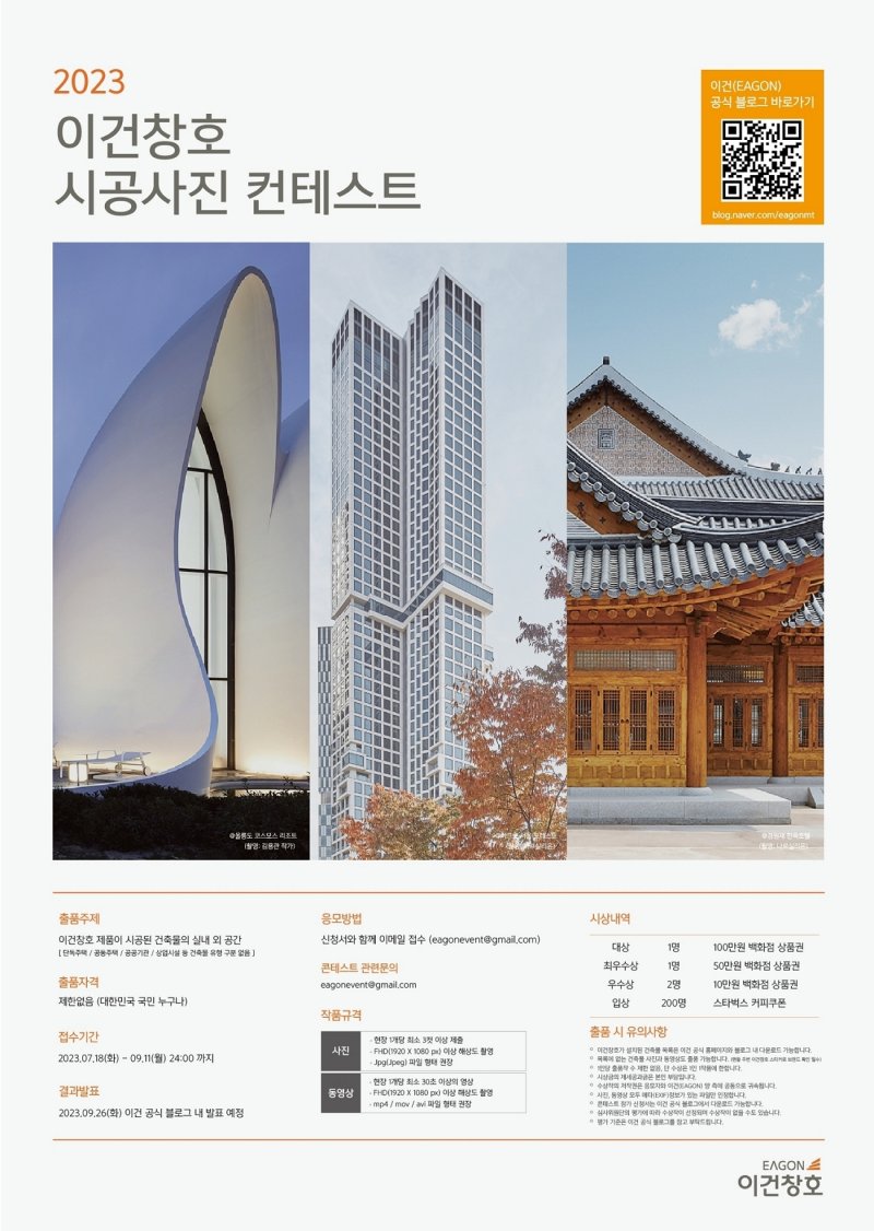 이건창호 관계자는 "인천공항, 국립중앙박물관 등 국내 대표하는 랜드마크 공공시설은 물론 전국 각지의 리조트와 호텔 등 곳곳에서 이건창호 제품을 확인할 수 있다"며 "2023 이건창호 시공사진 콘테스트에 많은 관심과 참여 바란다"고 전했다.