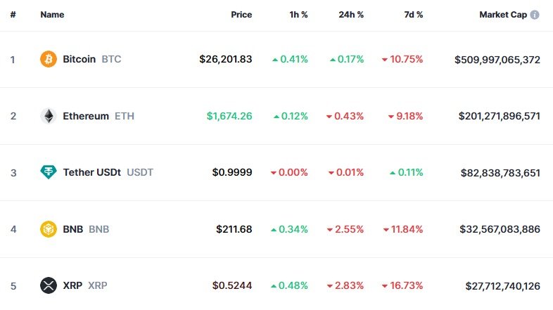 비트코인이 소폭이나마 상승해 2만6200 달러 선을 유지하고 있는 것. 전일에도 비트코인은 소폭 상승해 2만6000 달러 선을 유지했었다. 이로써 비트코인은 이틀 연속 상승에 성공했다.