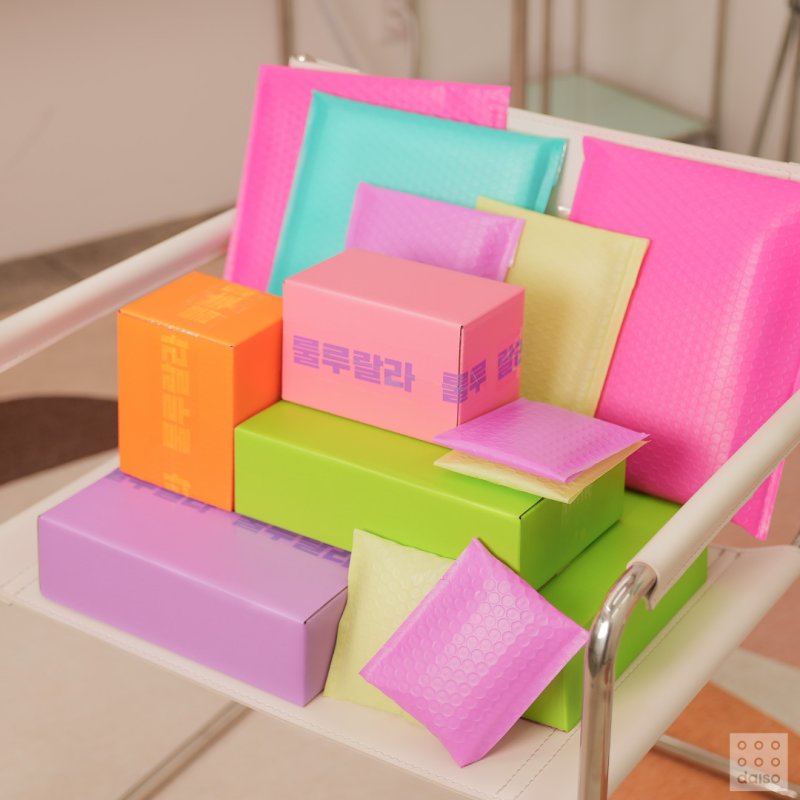 '컬러 택배봉투'는 핑크, 퍼플 등 파스텔톤 컬러다. '에어캡 택배봉투'는 내용물을 보호하는 택배봉투로 투명, 컬러, 메탈광택, 크라프트지 등 다양하게 구성했다.