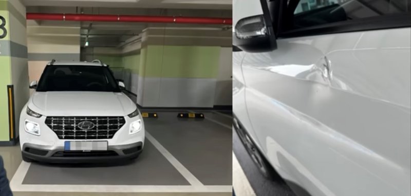 제보자 A씨는 "집 오피스텔 건물 지하주차장에 주차하고 다음날 봤더니 운전석 문이 파손돼있었다"며 "블랙박스를 보니 옆에 주차한 차가 나가면서 본인 차 뒷자석 문으로 제 차를 수차례 일부러 부시듯 치고 사라졌다"고 설명했다.