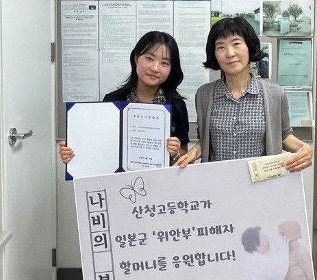 송도자 일본군 '위안부' 할머니와 함께하는 통영거제시민모임 대표는 "피해 생존자가 이제 얼마 남지 않은 상황에다 일본군 '위안부' 문제에 대한 관심과 참여가 점점 줄어 들어 어려운 시기에 산청고 학생들과 교직원, 지역 어르신들 귀한 마음에 감사드린다"고 말했다.