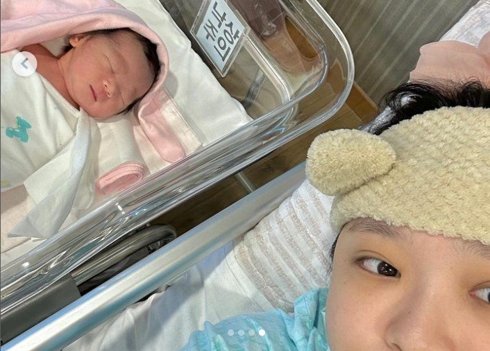 글과 함께 갓 태어난 자녀 '포도'의 사진도 공개했다. 3.2kg으로 태어난 포도는 곤히 잠든 모습이다.