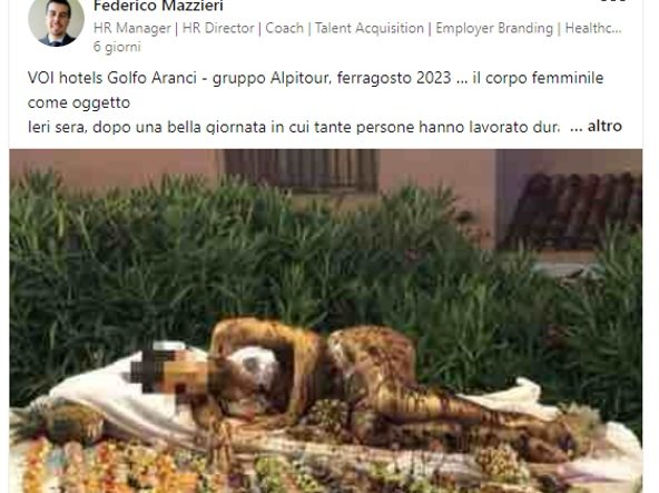 그는 "할 말을 잃었다"며 "알피토우르(리조트 소유 그룹)의 관리자는 여성의 몸을 어떻게 생각하는 거냐"고 말했다고 한다. 이어 "가족적인 분위기라고 홍보하는 리조트가 여성의 몸을 타인의 눈을 만족시키는 데 이용하는 것"이라 덧붙였다.