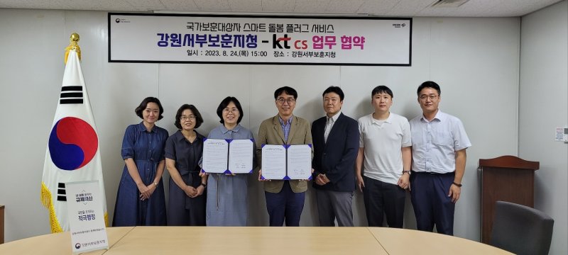 (강원=뉴스1) 한귀섭 기자 = 강원서부보훈지청은 24일 KT cs와 국가보훈대상자 복지 증진을 위한 ‘스마트 돌봄 플러그 서비스’ 도입 업무협약을 체결했다.