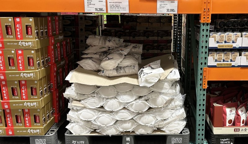 같은날 오전 북구의 한 농협유통센터 한쪽 편에는 정부비축 천일염 10㎏가 담긴 흰색 포대자루 수십개가 쌓였다.