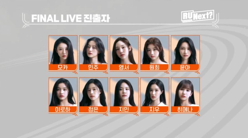 25일 방송된 '알 유 넥스트?' 세미 파이널에서 톱 6로 민주(1등), 모카(2등), 영서(3등), 이로하(4등), 지우(5등), 지민(6등)이 뽑혔다. 이중 모카는 세미 파이널에서 베네핏 총 400점을 획득하며 데뷔권에 처음 이름을 올렸다. 7등은 원희로 6등인 지민과는 단 2점 차였다. 최종 데뷔 인원은 6명이다.