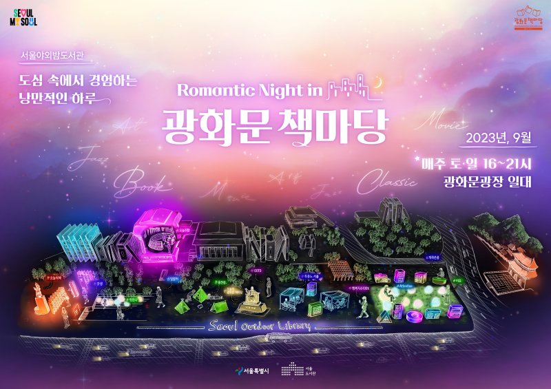 9월 광화문 책마당의 주제는 '로맨틱 나이트 인(Romantic Night in) 광화문 책마당'으로 재즈, 클래식 등 공연과 영화 상영 등 프로그램이 운영된다.