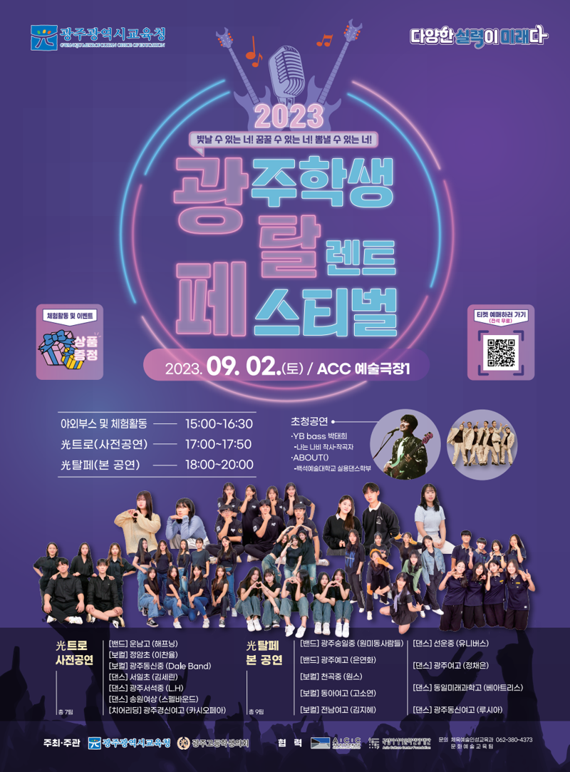 광주시교육청에 따르면 '2023 光탈페'는 학생의 다양한 끼와 재능을 마음껏 펼치고 즐길 수 있도록 기획된 프로그램이다.