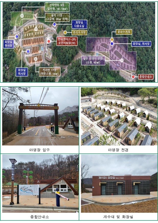 경기 고양시 소재 북한산국립공원 사기막 야영장은 서울 근교에 조성된 탄소중립형 야영장으로 부지면적 3만5000㎡에 △일반 야영지 27동 △체류 기반시설 43동 △코인 샤워장 1동 △개수대 3동 △어린이 놀이터 등의 시설을 갖췄다.