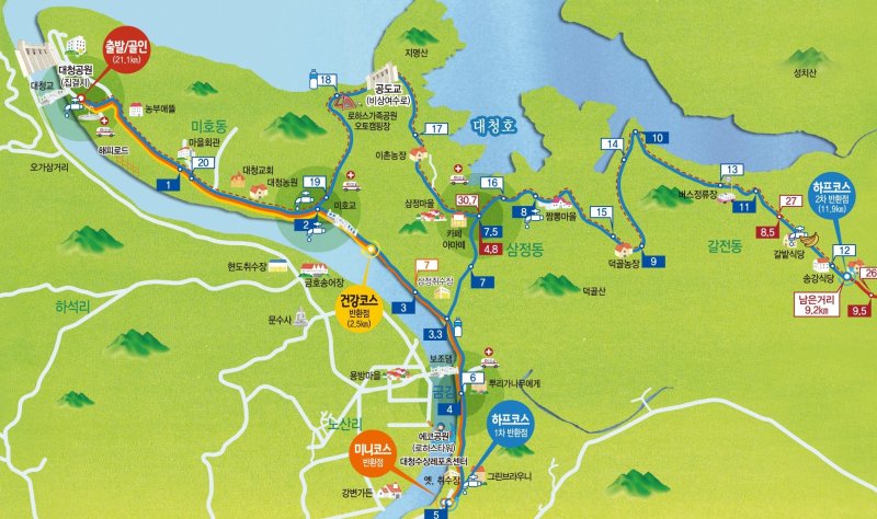 구는 안전한 대회 진행을 위해 당일 오전 8시 30분부터 11시 30분까지 대청대교네거리~대청공원~효평삼거리 등 마라톤 코스 구간 내 전면 교통통제를 진행할 계획이다.