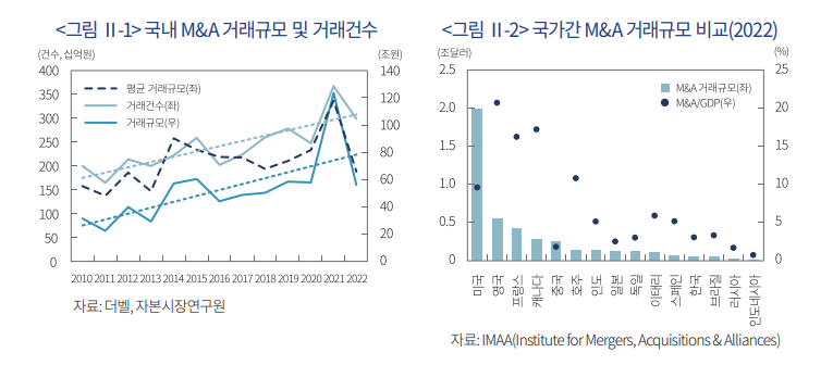 기업의 대표적 투자방식 중 하나인 M&A는 투자기회의 기업 간 재배분을 통해 기업에게 성장기회를 확보할 수 있는 수단을 제공하고, 경제의 역동성과 산업구조의 효율성을 높이는 데 있어 핵심적 역할을 한다.