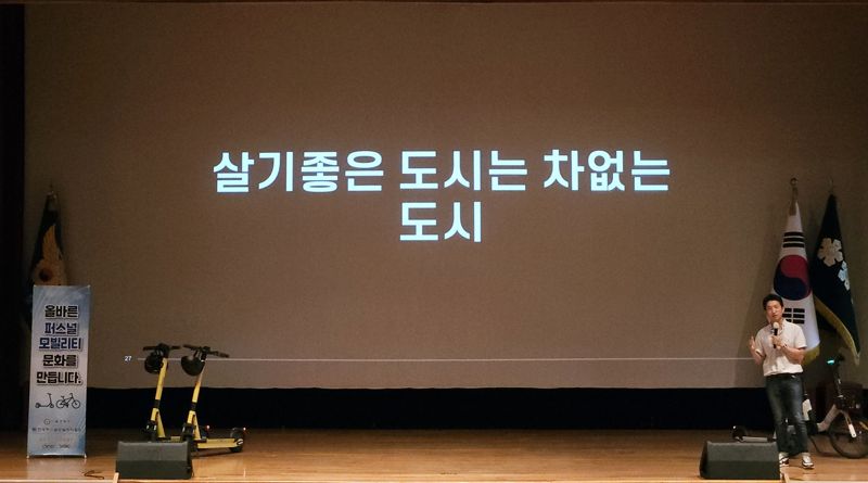 이날 교육에서 더스윙은 유럽, 미국 등 해외 선진도시들의 사례를 들며 PM은 차를 줄이고 보행 중심의 선진도시환경을 만드는데 필수적인 이동수단이란 점을 강조했다. 김 대표는 도시공학 전문가들과의 인터뷰를 토대로 '살기좋은 도시는 차없는 도시'라고 정의하며, 이를 만드는데 필수적인 PM 산업이 자리잡아야 한다고 했다.