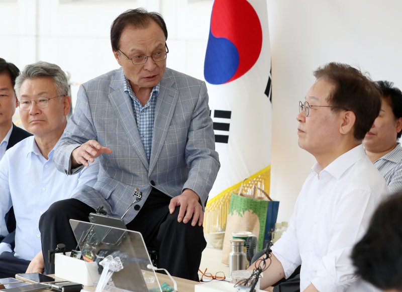 이 대표와 이 상임고문은 약 30분 동안 천막에서 대화를 나눈 이후 본청 당대표실로 자리를 옮겨 40분가량 더 이야기를 나눴다. 면담을 끝낸 이 상임고문은 별다른 소감을 밝히지 않은 채 국회를 떠났다.