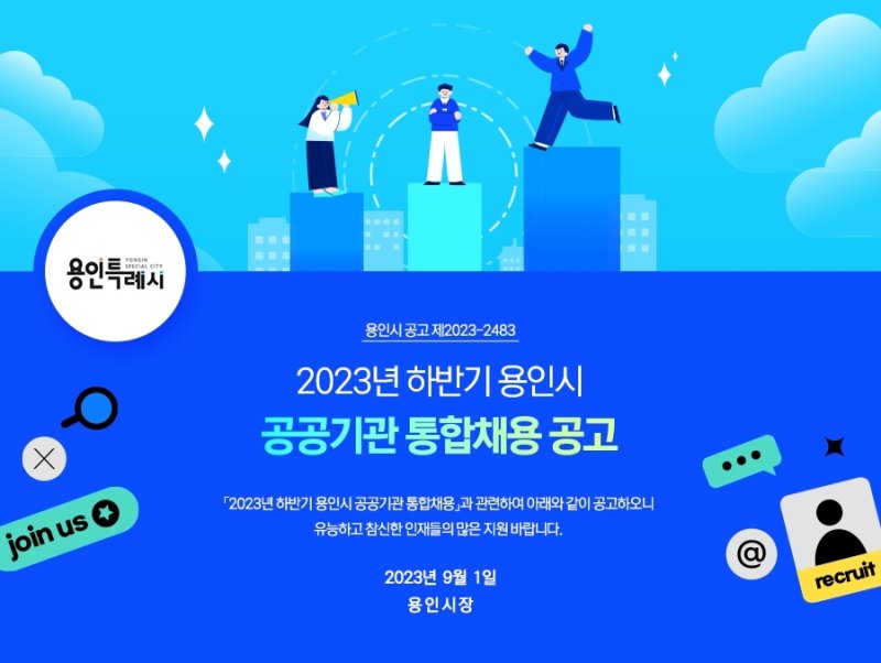 시 관계자는 “용인시 공공기관 채용에 관심이 있는 유능한 분들이 많이 응시하시길 바란다”며 “시는 공정하고 투명한 채용을 위해 전 과정을 엄정하게 관리하겠다”고 말했다.