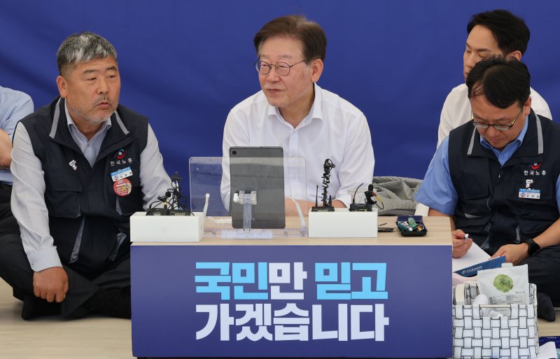 이 대표는 이날 오후 김동명 한국노동조합총연맹 위원장이 단식 투쟁 중인 농성장에 찾아와 노란봉투법의 조속한 처리를 요구한 것에 대해 이같이 밝혔다.