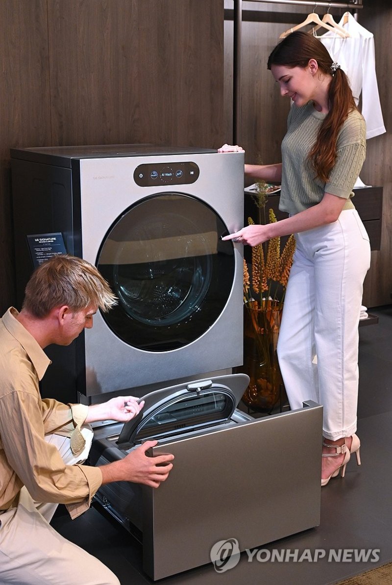 10일 업계에 따르면 LG전자[066570]와 삼성전자[005930]는 최근 독일 베를린에서 열린 유럽 최대 가전·IT 전시회 'IFA 2023'에서 나란히 세탁건조기 신제품을 공개했다.