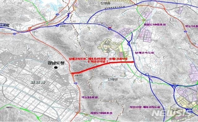 [김해=뉴시스] 김상우 기자 = 장기 현안사업으로 남아 있는 창원과 김해를 연결하는 비음산터널 건설이 김해~밀양 고속도로 창원 노선 연장으로 실마리가 풀리고 있다.