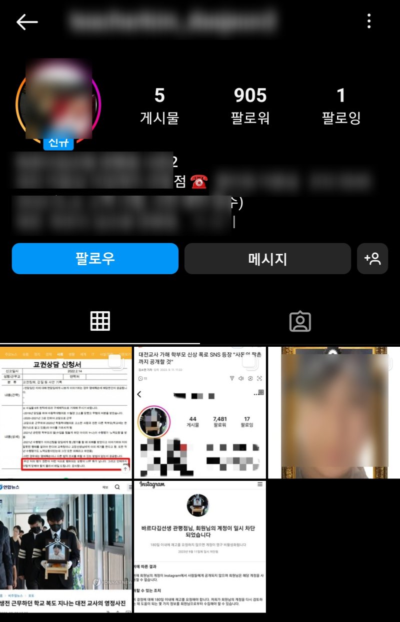 (대전=뉴스1) 허진실 기자 = 지난 7일 극단선택으로 숨진 대전교사와 관련, 악성 민원을 넣었다고 알려진 학부모의 신상을 공개하는 SNS(사회관계망서비스) 계정이 개설돼 논란이 일고 있다.
