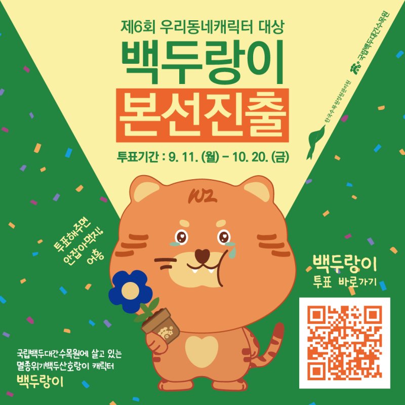 류광수 이사장은 “멸종위기 백두산 호랑이 캐릭터 백두랑이가 좋은 성적을 거둘 수 있도록 많은 성원을 부탁한다”며 “앞으로도 백두랑이 캐릭터를 활용해 자칫 어려울 수 있는 공공의 역할을 재치있고 친근한 방법으로 알릴 수 있도록 노력하겠다”고 말했다.