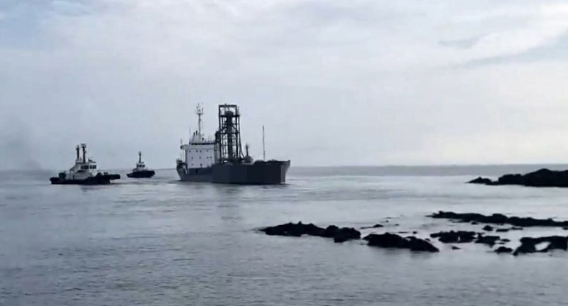해경은 민간 예인선 3척을 동원해 만조시간대(오전 9시38분)를 맞아 이초(암초에서 배를 떼어내는 다시 뜨게하는 것)작업을 진행하고 있다.