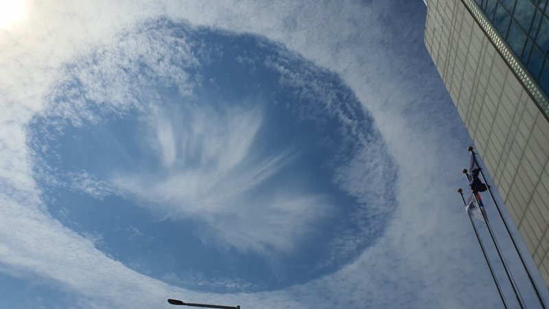 강원지방기상청은 해당 구름을 폴스트리크 현상으로 확인했다. 강원지방기상청은 구름이 비행기나 외부 충격에 의해 얼음으로 변경되자 무게를 이기지 못하고 떨어져 구멍이 뚫린 것처럼 보이게 된 것이라고 설명했다.