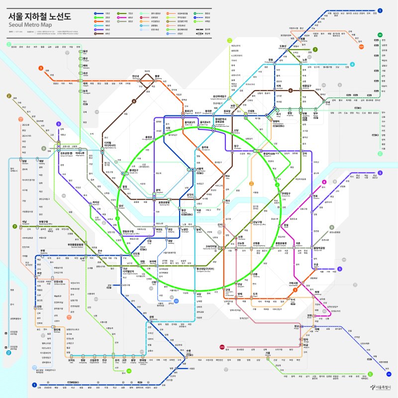 국제표준의 8선형 적용과 원형 형태를 적용한 2호선 순환선을 중심에 두어 강조하고, 지리적 정보를 고려한 노선 적용을 통해 이용자가 읽기 쉽고 효율적으로 길을 찾을 수 있도록 개선했다.