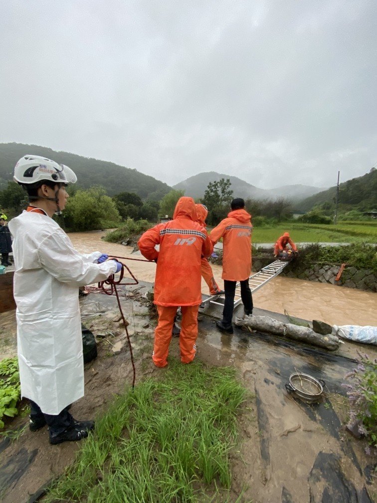 이날 오전 10시28분께 마산 합포구 진동면 인곡리에서 밭일을 하던 70대 여성이 높아진 하천 수위로 고립돼 소방이 구조했다.