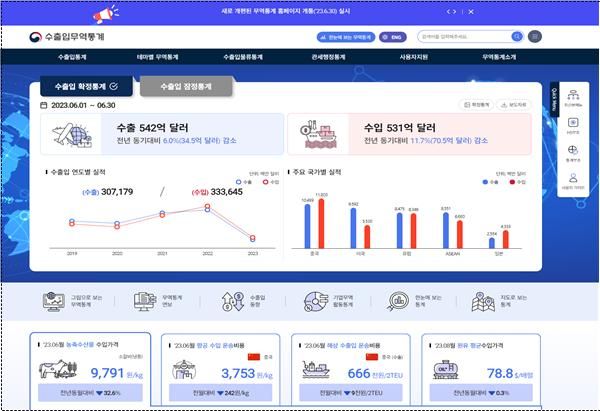 수출입 현황 등 이용 빈도가 높은 통계를 첫 화면에 배치하고, 반응형 웹을 도입해 PC·스마트폰·태블릿 등 사용 기기에 최적화된 화면을 제공한다. 반응형 웹은 단말기 화면 크기와 비율에 실시간 반응해 웹페이지 화면을 최적화하는 웹이다.