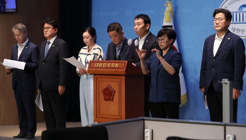 강득구, 김용민, 박찬대, 민형배, 황운하 의원은 이날 오후 국회에서 기자회견을 열고 "이제 잘못한 검사는 처벌받고 징계받게 하겠다"며 "잘못한 검사를 탄핵하는 지극히 상식적인 일을 시작하겠다"고 강조했다.