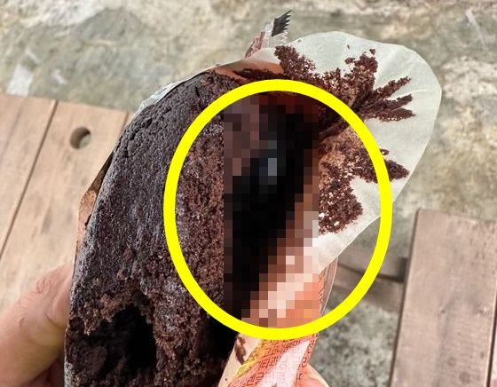 영상을 보면 개봉된 봉지 안 초콜릿빵 사이로 손가락 한 마디 정도 크기의 검은색 곤충이 움직이고 있다.