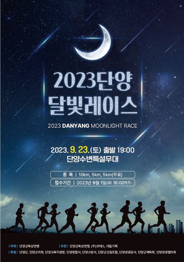 대회 사무국 관계자는 "단양 달빛레이스는 건강도 챙기고 아름다운 야경 속에서 맑은 공기를 마시며 자신의 한계에 도전해 볼 수 있는 좋은 기회가 될 것"이라며 "전국 동호인들의 많은 참가를 바란다"고 말했다.