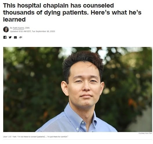 (서울=뉴스1) 이유진 기자 = 미국의 한 병원에서 죽음을 앞둔 수천명의 환자들의 '마지막 이야기'를 들어주는 한국계 목사 준 박(41)의 사연을 미국 CNN방송이 19일(현지시간) 집중 조명했다.
