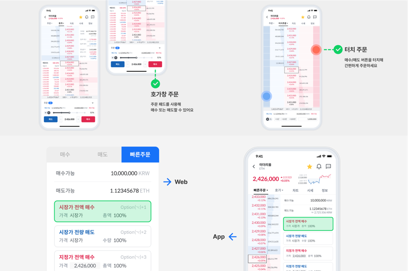 [파이낸셜뉴스] 가상자산 원화마켓 거래소들이 '유저 인터페이스' 혁신을 본격화하고 있다. 20일 가상자산업계에 따르면 코인원은 빠른 주문과 앱 호가창 주문 기능을 업데이트했다. 코인원 거래 탭에 신설된 ‘빠른 주문'은 자주 사용하는 주문 조건을 모아두어, 선택 한 번으로 빠르게 주문할 수 있는 기능이다.