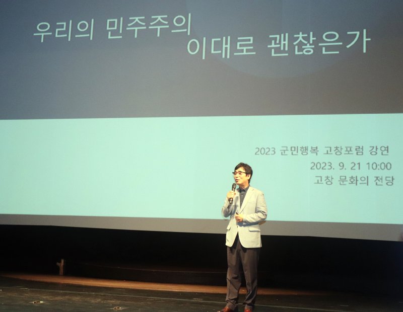 전북 고창군이 21일 오전 10시 고창문화의전당에서 유시민 작가(전 보건복지부 장관)를 초청해 ‘우리의 민주주의 이대로 괜찮은가’ 주제로 군민 포럼을 열었다.