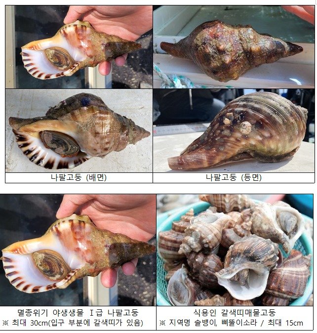 (세종=뉴스1) 심언기 기자 = 멸종위기 야생생물 Ⅰ급, 해양보호생물로 지정된 나팔고둥이 지상파 한 예능 프로그램에서 유통·판매되는 모습이 방영되면서 논란이 일자 환경부가 전국적인 홍보·계도 활동에 착수하기로 했다.
