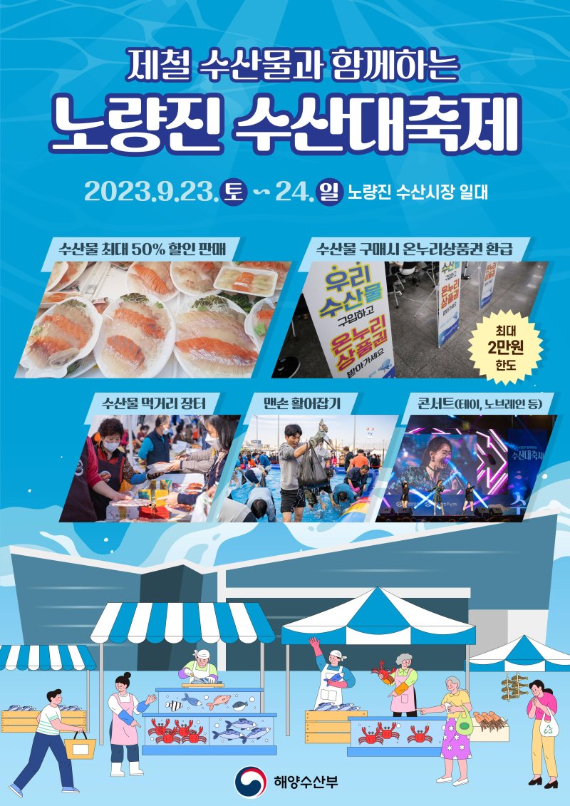 해수부와 수협중앙회는 이번 축제를 통해 추석을 앞둔 국민들에게 맛 좋은 제철 수산물을 저렴한 가격에 제공한다. 행사 기간 최대 50% 할인된 가격으로 수산물을 구입할 수 있다. 구입 금액에 따라 온누리 상품권으로 최대 2만원까지 환급도 받을 수 있다.