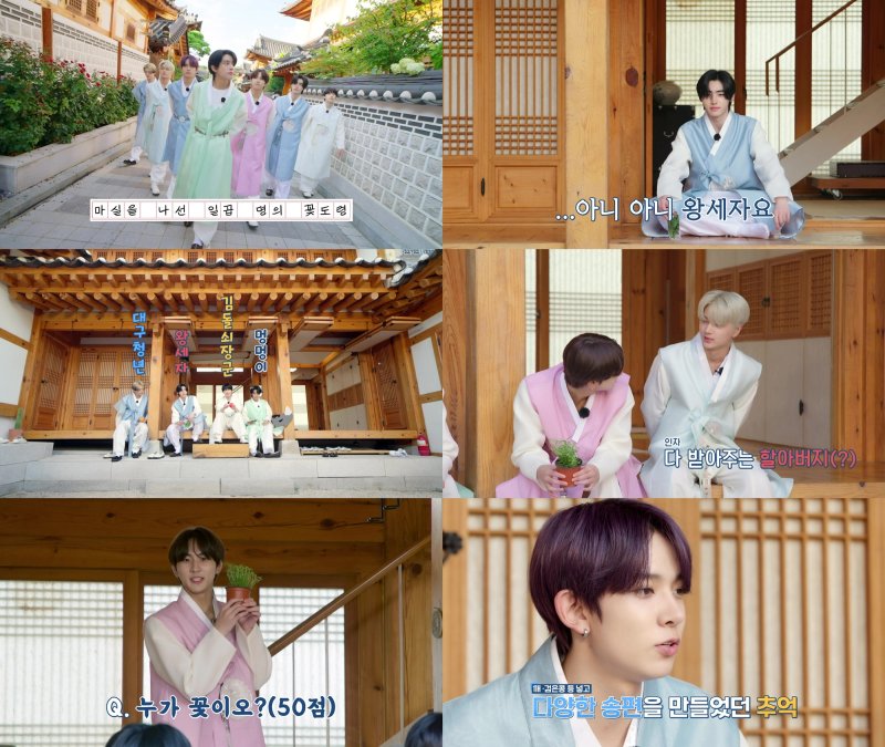 [서울=뉴시스]고인혜 인턴 기자 = 그룹 '엔하이픈'(ENHYPEN)이 추석을 맞아 일곱 명의 꽃도령으로 변신했다.