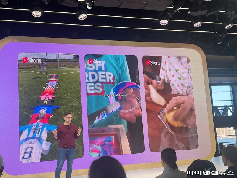 또 매월 20억 명 이상이 로그인하는 ‘유튜브 쇼츠’에 연내 도입될 생성형 AI ‘드림 스크린’도 창작자가 상상하는 모습 그대로 배경을 넣을 수 있다는 점에서 눈길을 끌었다. 유튜브 시니어 디렉터인 매튜 시마리가 실제 드림 스크린을 시연하면서 ‘뉴욕시를 날아다니는 용’을 글자로 입력하자, 곧바로 관련 영상이 구현됐다. 시마리 디렉터는 “창작자의 스토리텔링 능력과 드림 스크린을 합치면 손끝에서 무한한 가능성이 펼쳐질 것”이라고 자신했다.